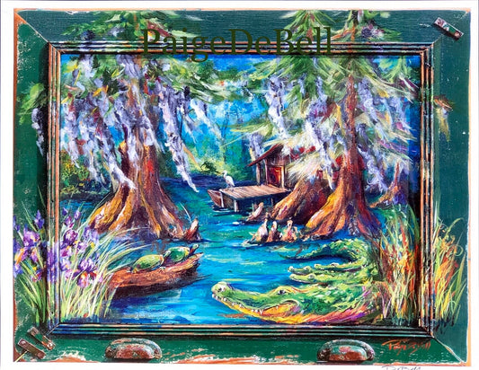 ALLIGATOR BAYOU ** 11" x 14" Print of my original painting by New Orleans artist, Paige DeBell on Architectural Salvage