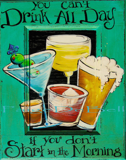 BAR SIGN**You Can't Drink All day if you don't Start in the Morning** whimsical saying and mixed drinks** 11" x14" Print of Original