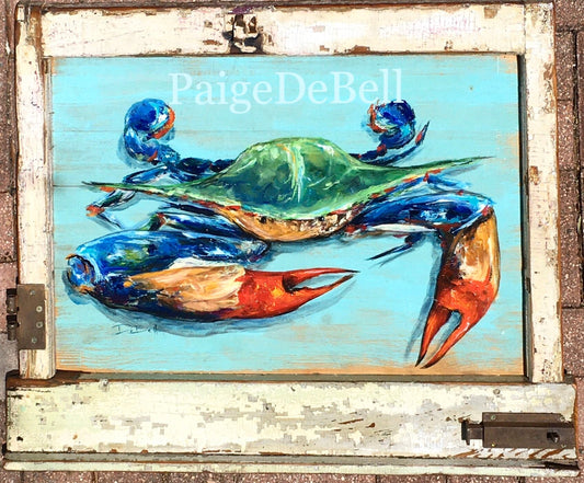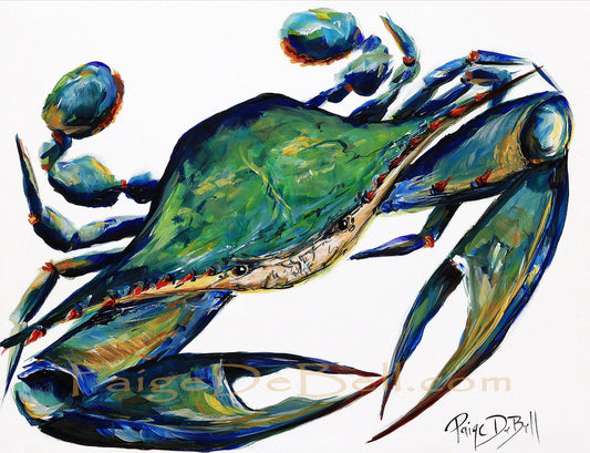 BAYOU BLUE CRAB** Print of my original Crab painting by New Orleans artist, Paige DeBell