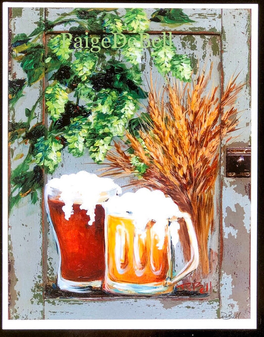 BARLEY and HOPS Painting**BEER Painting on Architectural Salvage ** 11"x 14" Print of my original by New Orleans artist, Paige DeBell