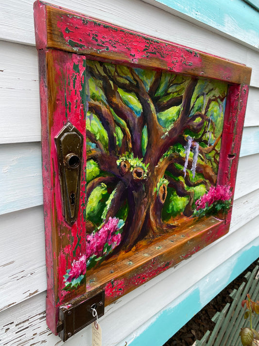 AZALEAS Under the OAKS Original painting on Architectural Salvage frame.