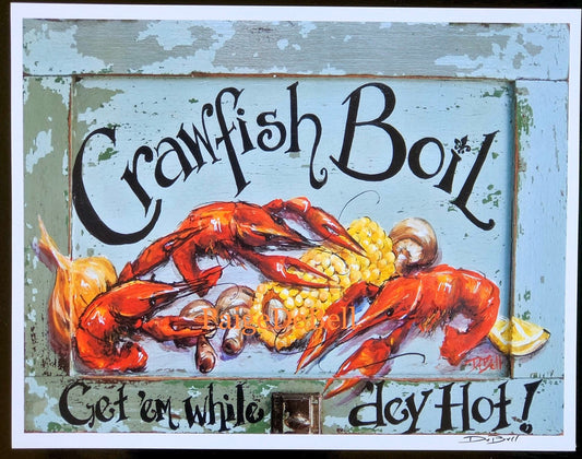CRAWFISH BOIL ** 11" x14" Print of my original painting by New Orleans artist, Paige DeBell on Architectural Salvage