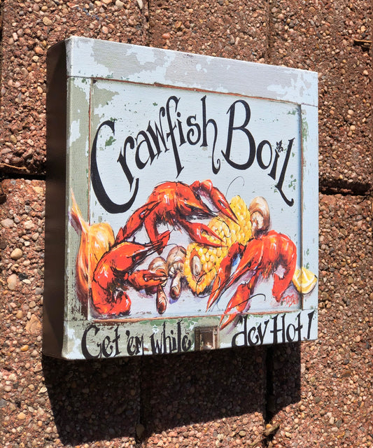 CRAWFISH BOIL ** 8x8" Stretched Canvas Giclee of my original painting by New Orleans artist, Paige DeBell on Architectural Salvage