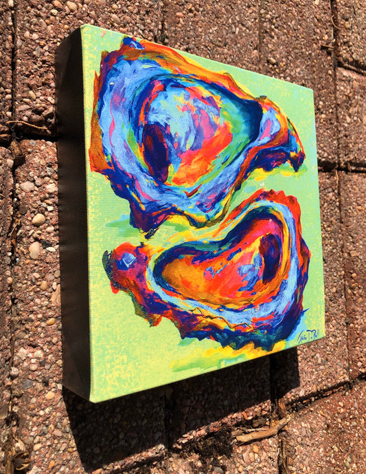 COLORFUL OYSTER PAINTING ** 8X8 Stretched Canvas Giclee of my original painting by New Orleans artist, Paige DeBell