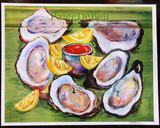 OYSTERS on the HALF SHELL** 11" x14" Print of my Original Oyster painting by New Orleans artist, Paige DeBell on Architectural Salvage