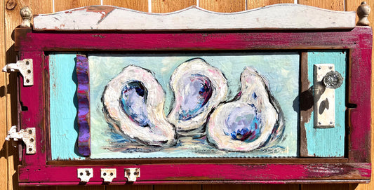 OYSTER PAINTING in a Vintage Reclaimed Wood Window*Large Seafood Art* 39" x 34"