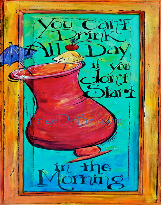 You can't Drink All Day if you don't Start in the Morning** Bar art*Print of an original painting by New Orleans artist Paige DeBell 11 x 14