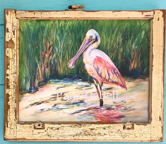 ROSEATE SPOONBILL PAINTING** Architectural Salvage Frame**Vintage Window Sash 20 x 24** Paige DeBell Fine Art