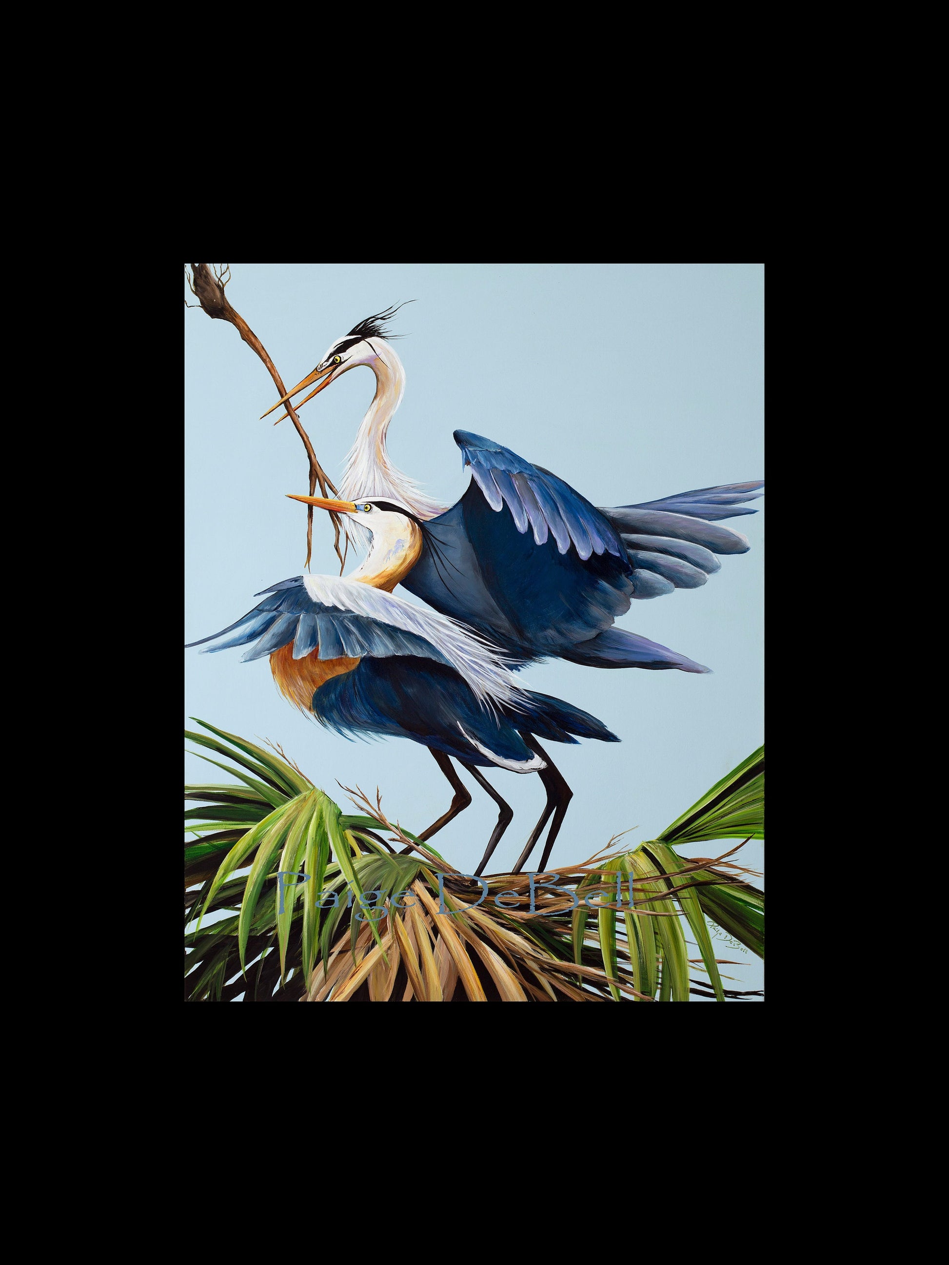 BLUE HERONS NESTING Painting ** 11" x 14" Print of my Original by New Orleans artist, Paige DeBell