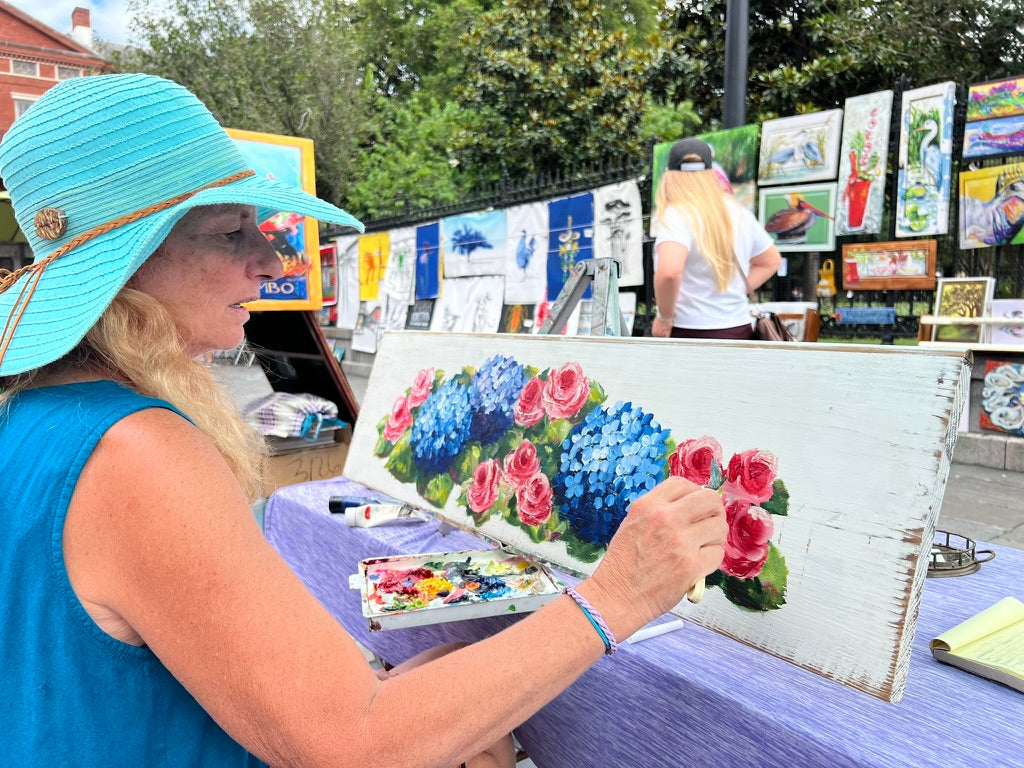 Roses and Hydrangeas. Original on Architectural salvage from New Orleans. 14 x41”