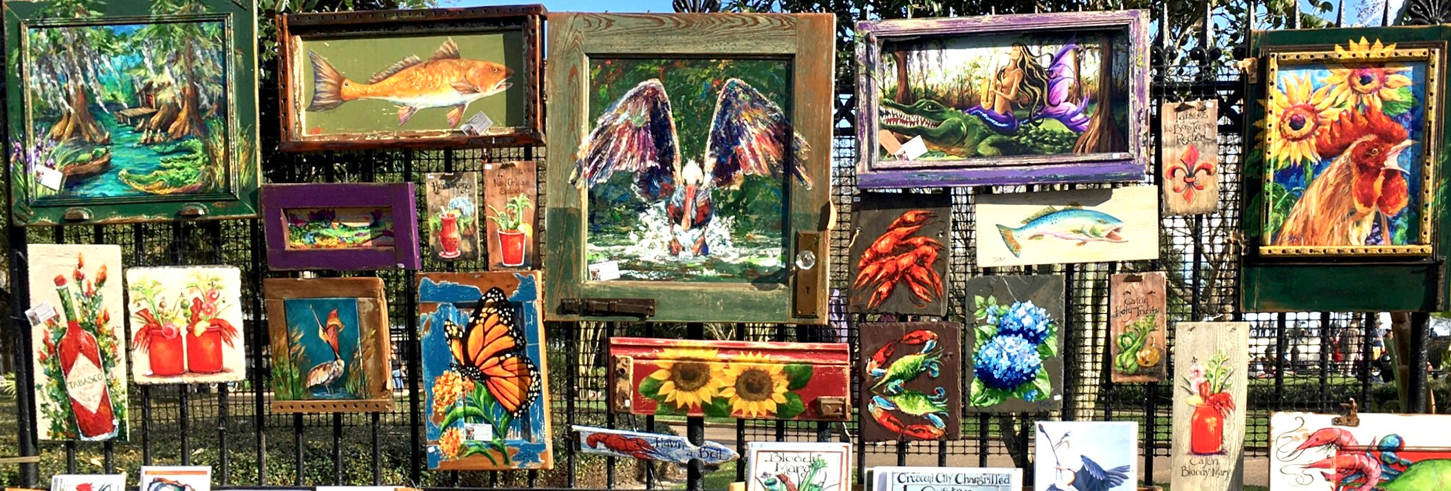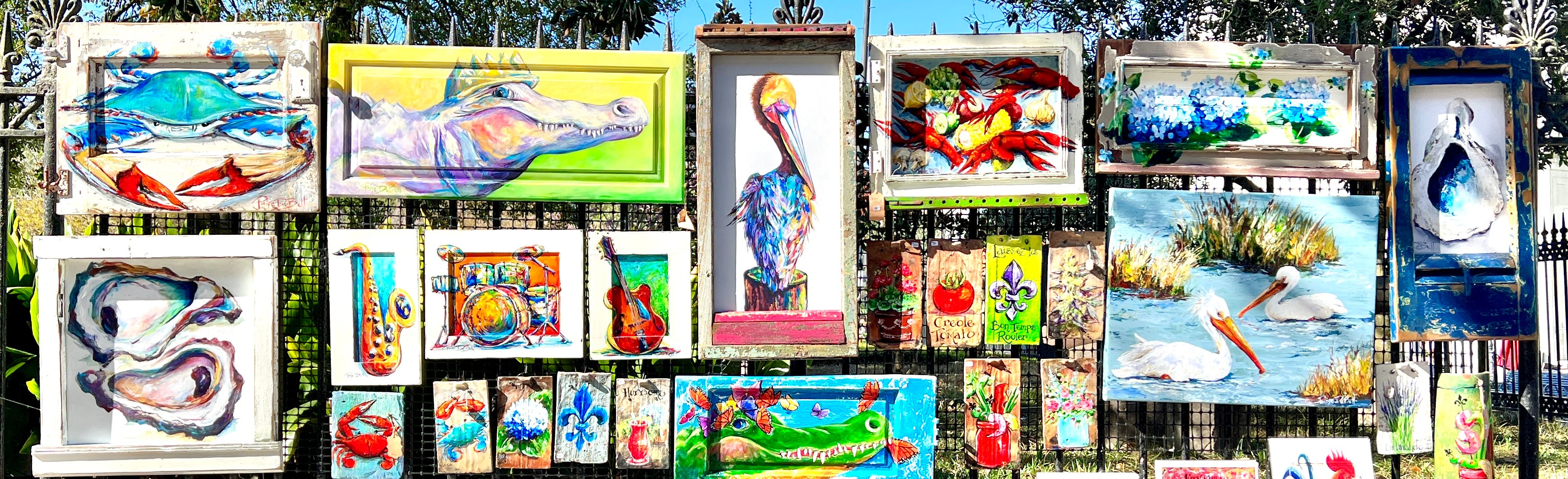 New Orleans artist, Paige DeBell, painted these pieces in her studio in the Lower 9th Ward.